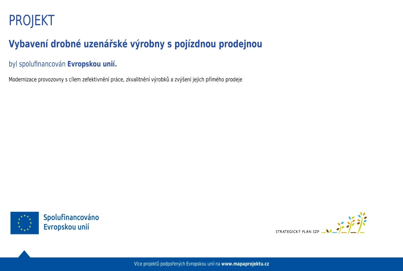 V rámci projektu došlo k dovybavení drobné uzenářské výrobny o novou technologii zpracování - chlazené masírovací zařízení a pořízení myčky řeznických přepravek.